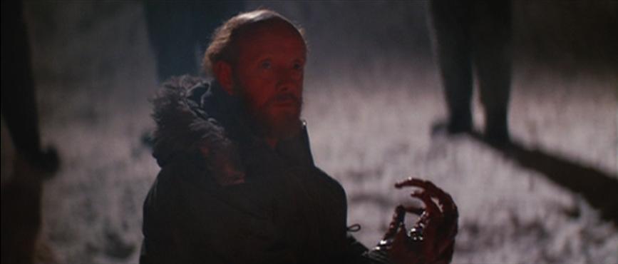 At this point, we’ve seen the alien attack and replicate the camp’s sled dogs, but we haven’t seen it assimilate a human until it takes over Bennings. This is basically when the shit really hits the fan for the other men on the base, because now it’s open season. The initial look on Bennings face evokes terror, but when he opens his mouth and lets out an unholy scream, we know that the terror is ours, not his. There are several moments in the film where we feel that we’re losing control on the situation, and this is one of them.