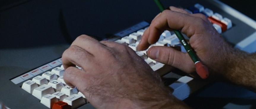 Prior to Blair’s breakdown in the radio room, he discovers the method the alien uses to take over its host, as well as the time it will take for the world to be completely invaded. As he times out the seconds it takes for the invader cell to replicate dog cells, the sound of his pocketwatch ticks in the background. He types information into the computer, the clicking of the keys blending into the sound of the watch, and as the scene progresses, a sense of dread and inevitability creeps ever further in from the edges of the screen.