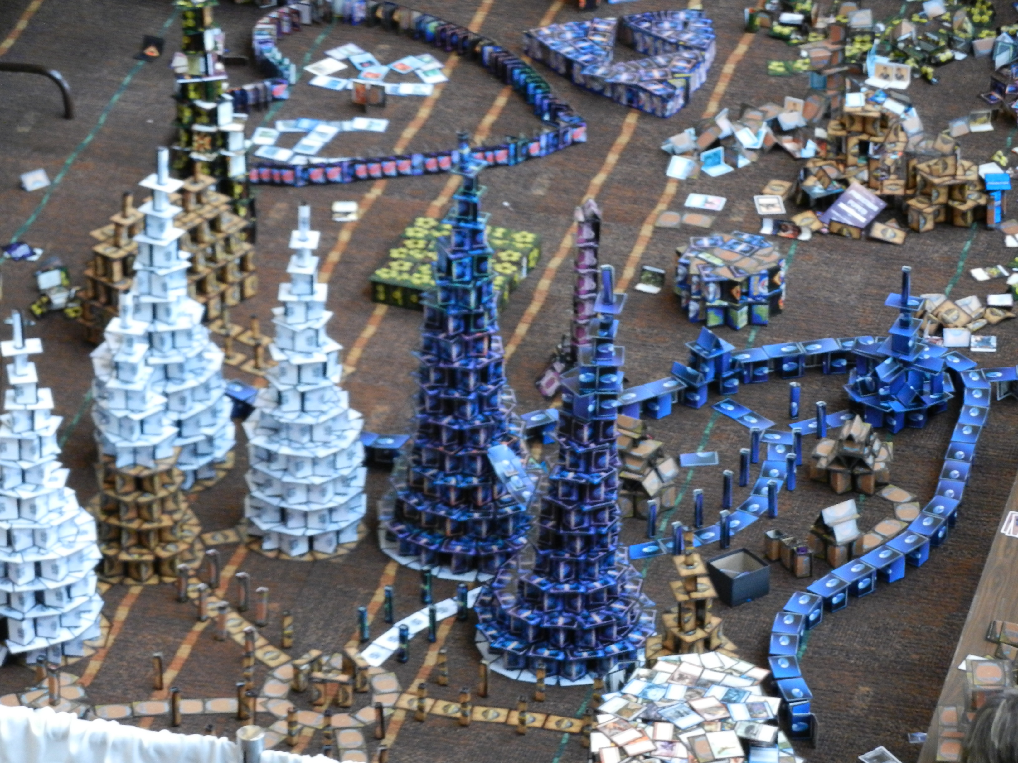 After that, Matt, Tank, Tank’s cousin Jason, and I headed back into the vendor hall where they proceeded to buy, sell, and / or trade approximately 1578395 Magic: The Gathering cards for their various decks. I had time to kill waiting to pick up my book-prize, so I got a few more pictures for Con Bingo and watched with amusement as my friends pored over the many cards offered for sale. After a time, we, along with Jason’s step-son, who was working on building his first M:TG Commander deck, sat down for an unlimited-game, open M:TG session where you could play informally among friends. Any games you happened to win, you could pull two cards from a random draw box of cards; if you lost, you could pull one card. I lost twice, but ended up pulling a couple of neato cards, so now I feel particularly motivated to get my old decks out and re-purpose them into something interesting. The second game we played was six-person against two guys who had similarly-built decks to the ones we were using, so we had a grand ol’ time meeting new people and watching how each person’s strategy unfolded. The guy who won did so in a surprising and well-played way, so there was no animosity at the table when he killed us all with a million points of damage.