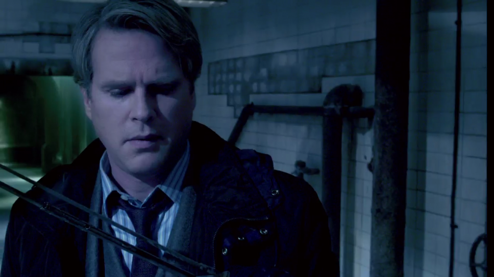 Saw 3D, a.k.a. Saw: The Final Chapter (2010, dir. Kevin Greutert; repeat view) – Finally, the Saw films end here (one hopes), wrapping up the loose ends (were…there…any?) while introducing a new character, self-help guru and supposed Jigsaw victim Bobby Dagen (Sean Patrick Flanery, who’s probably forgotten he was even in this by now). Bobby concocted his phony story of survival with the help of friends, all of them benefiting from book deals and national appearances. Naturally, that means he’s sent through an actual set of traps, working to save his accomplices. Meanwhile, Hoffman-as-Jigsaw has captured a group of racists, putting them in what is easily the franchise’s most egregious and disgusting trap. Up until this point, the people in the traps have typically shown up later or been involved in the story on a greater scale; the skinheads have nothing to do but die here. Not that I care — they’re skinheads and also it’s a movie — but this felt really over the top and senseless in the grand scheme. Anyhow, there had been greasy message-board rumors up to this point that Cary Elwes would be coming back to reprise his role as Dr. Gordon, and sure enough, he does appear here in the most fan-service-y way possible. Actually, I can’t say boo to it, because he serves justice to the horrorshow that is Costas Mandylor, just as I wished. Thanks, Westley! You’re a peach.