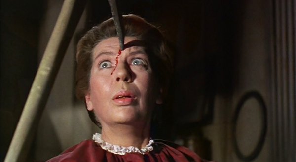 Twice Told Tales (1963, dir. Sidney Salkow; first time view) – Anthology film based on three Nathaniel Hawthorne stories — “Dr. Heidegger’s Experiment,” “Rappaccini’s Daughter,” and House of the Seven Gables — each starring Vincent Price. Of the three, the strongest tale may be “Dr. Heidegger’s Experiment,” in which Price and Sebastian Cabot, as the title character, play aging friends celebrating a birthday and mourning the passing of Heidegger’s fiancée nearly four decades prior. As they visit her tomb, they discover that she has been perfectly preserved by some kind of mysterious water that’s been dripping on her coffin. Furthermore, they find that this substance can renew life to an old pressed flower, and decide to drink it to regain their youth. What happens after is a mix of the old monkey’s paw-style of storytelling, and the kind of Twilight Zone-esque twist ending where consequences are harsh and wishes have a deadly kickback. “Rappaccini’s Daughter,” which involves two young lovers kept apart by a controlling father and a very strange skin condition, is fairly dry and offers little more than smoky special effects and a lot of men controlling the fate of the female lead. The final segment, based on a novel as opposed to a short story, has a promising start but devolves into a lot of general silliness. Here, Price plays the cursed son in a long line of cursed sons, returning to the family home to break the spell once and for all. There’s a bit with a severed flying skeleton arm, if that tells you anything about how different this version is from Hawthorne’s novel. Overall, not a terrible trilogy of spooky stories, but really only worth watching for Price alone.